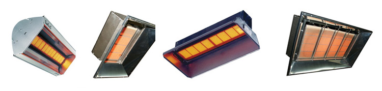 每個產(chǎn)品均有不同數(shù)量的燃燒模塊即陶瓷片(包括單獨的穩(wěn)壓器、氣閥等)、由噴嘴、引射管、混合段、帶孔的陶瓷輻射板或帶孔不銹鋼輻射板、反射罩組成。